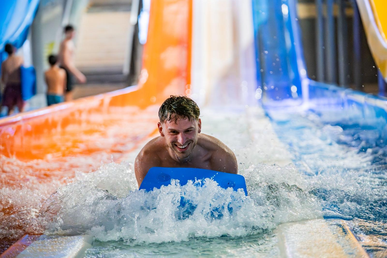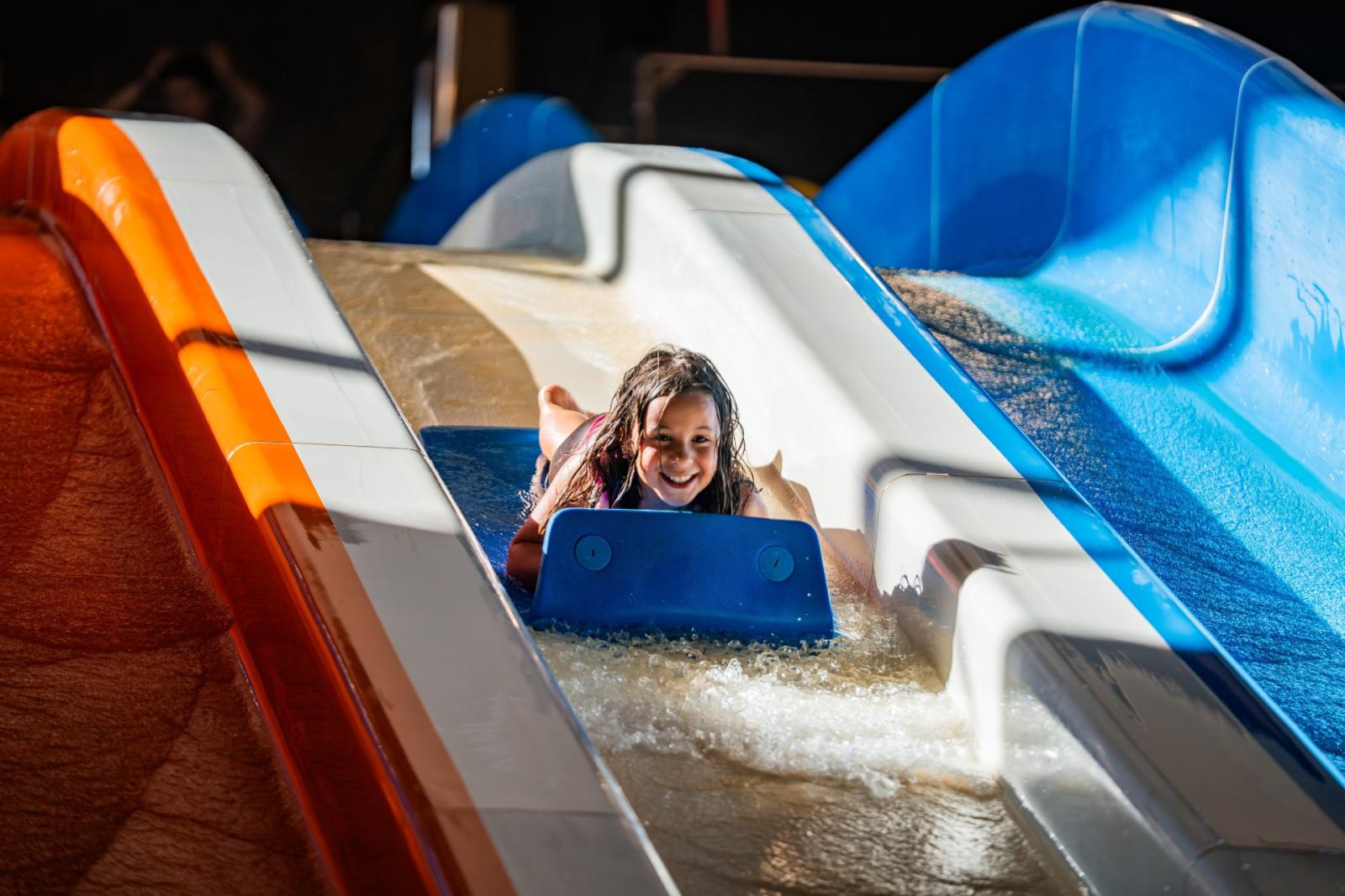 Die Indoor-Attraktionshalle ist das ganze Jahr über geöffnet und Sie können auch bei schlechtem Wetter Adrenalin genießen .Werden Sie den Kamikaze oder das Race Race bezwingen oder lieber die ruhigeren Wellen des Blue Trio genießen?
