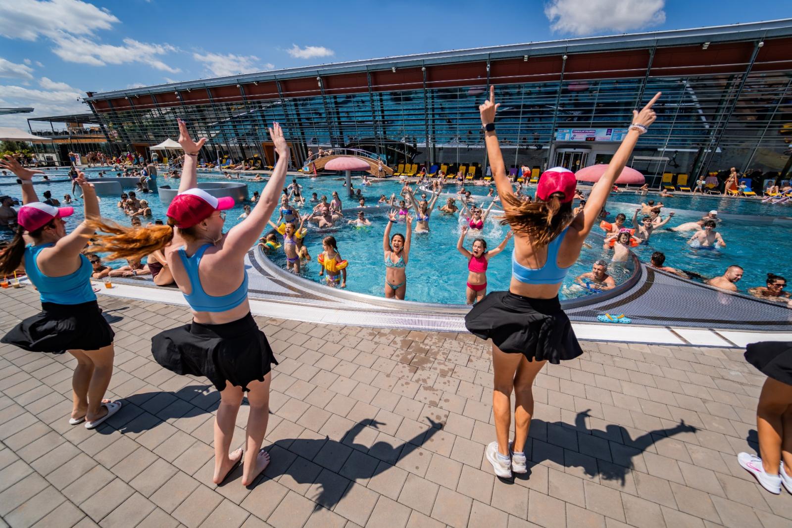 Es gibt 16 Schwimmbecken, darunter zwei Außenbecken mit einer Wassertemperatur von 37 °C, 40 Attraktionen und 30 Saunen und Behandlungen.