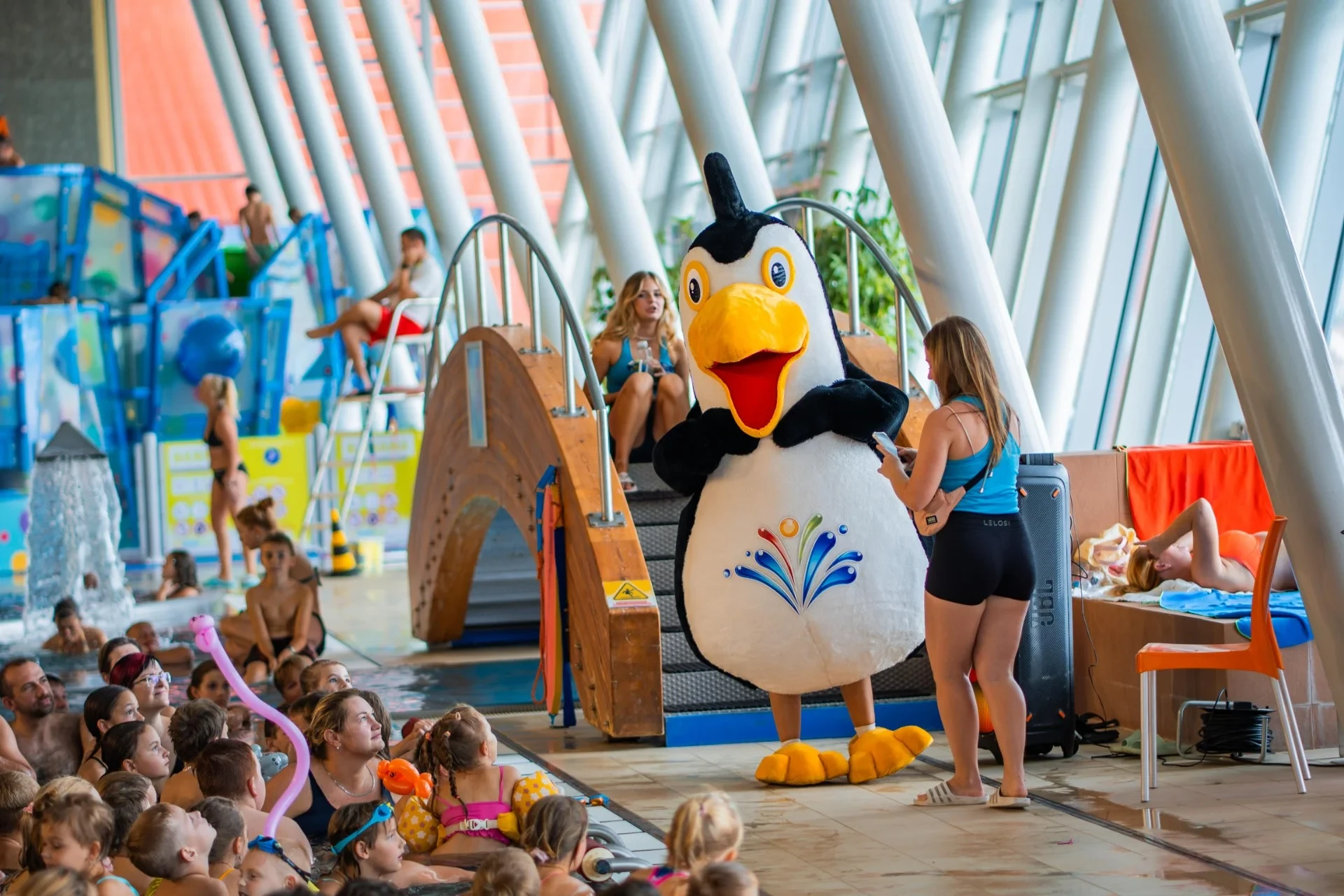 Unser größtes Hallenbad, ganzjährig geöffnet. Genießen Sie das ganze Jahr über bei jedem Wetter die Massagedüsen, Wasserspeier, Sprudler und Wasserliegen .