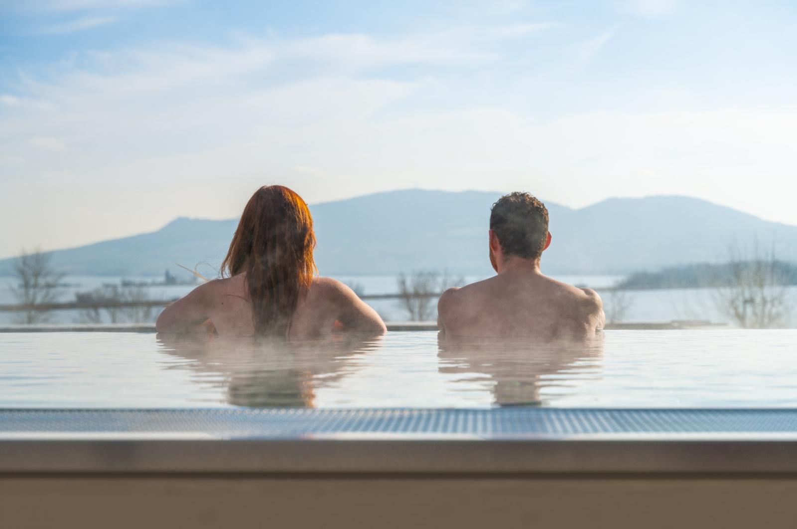 Draußen wird es Ihnen bestimmt nicht kalt. Es gibt die Thermalbecken Romulus und Remus mit 37 °C warmem Wasser. Während Sie sich im Freien entspannen, genießen Sie außerdem einen unvergesslichen Blick auf die Pollauer Berge.